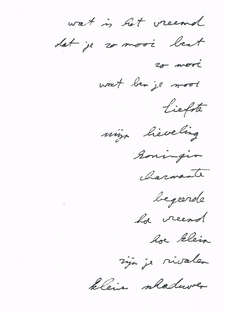 Deze poëziefragmenten werden apart uitgegeven in Mignon, met tekeningen van de tentoonstellingsruimte, ter plekke gemaakt, bij wijze van ‘catalogusafbeeldingen’.