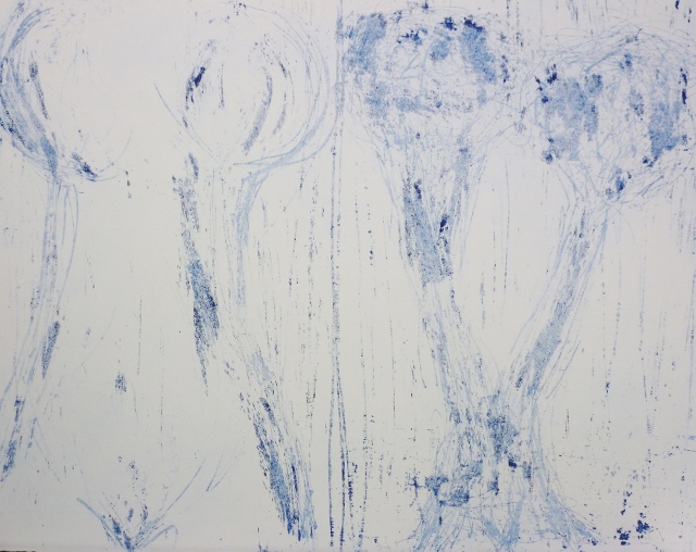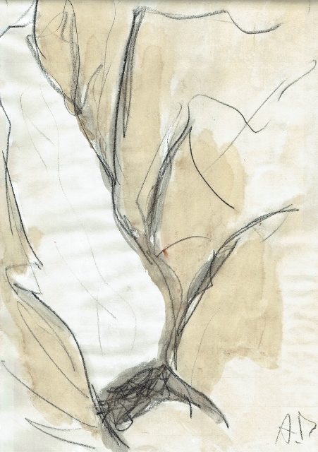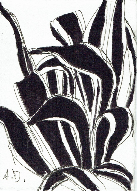 Hier is geen aparte zaaltekst voor opgemaakt. De werkjes staan op zich en zijn soms ook gewone waarnemingsoefeningen volgens Arne Deprez, zoals de modelschetsen naar het einde toe, of eerder compositie-oefeningen, zoals hier meteen de Aloe Vera’s en Agave’s.
