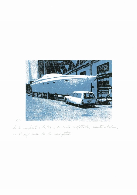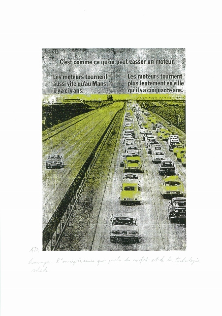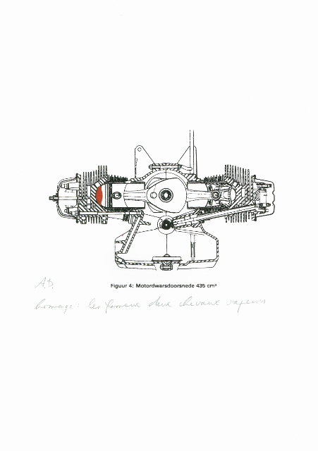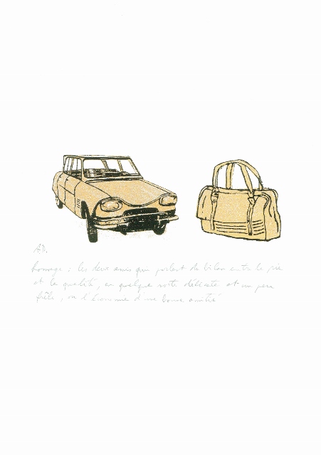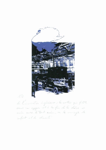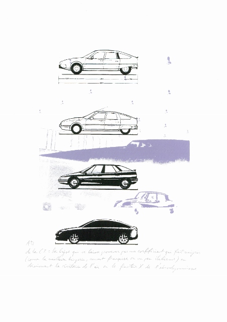 Arne Deprez is van kindsbeen af al liefhebber van het merk. Het begon mee wiegend op de achterbank van pepe’s DS. Rondom het 90-jarig bestaan van Citroën in 2009, maakte hij een reeks van 20 zeefdrukken die in beeld en een korte poëtische tekst, volgens hem ‘de geest van de legende van Citroën’ vat. Het is een eigenzinnige reeks geworden, met beelden die ook zonder het merk overeind blijven en iets grafisch te bieden hebben – al ligt de kracht van de reeks precies ook in de diepere betekenislaag van het merk, waarvan de aspecten die aan bod komen historisch en technisch correct zijn.