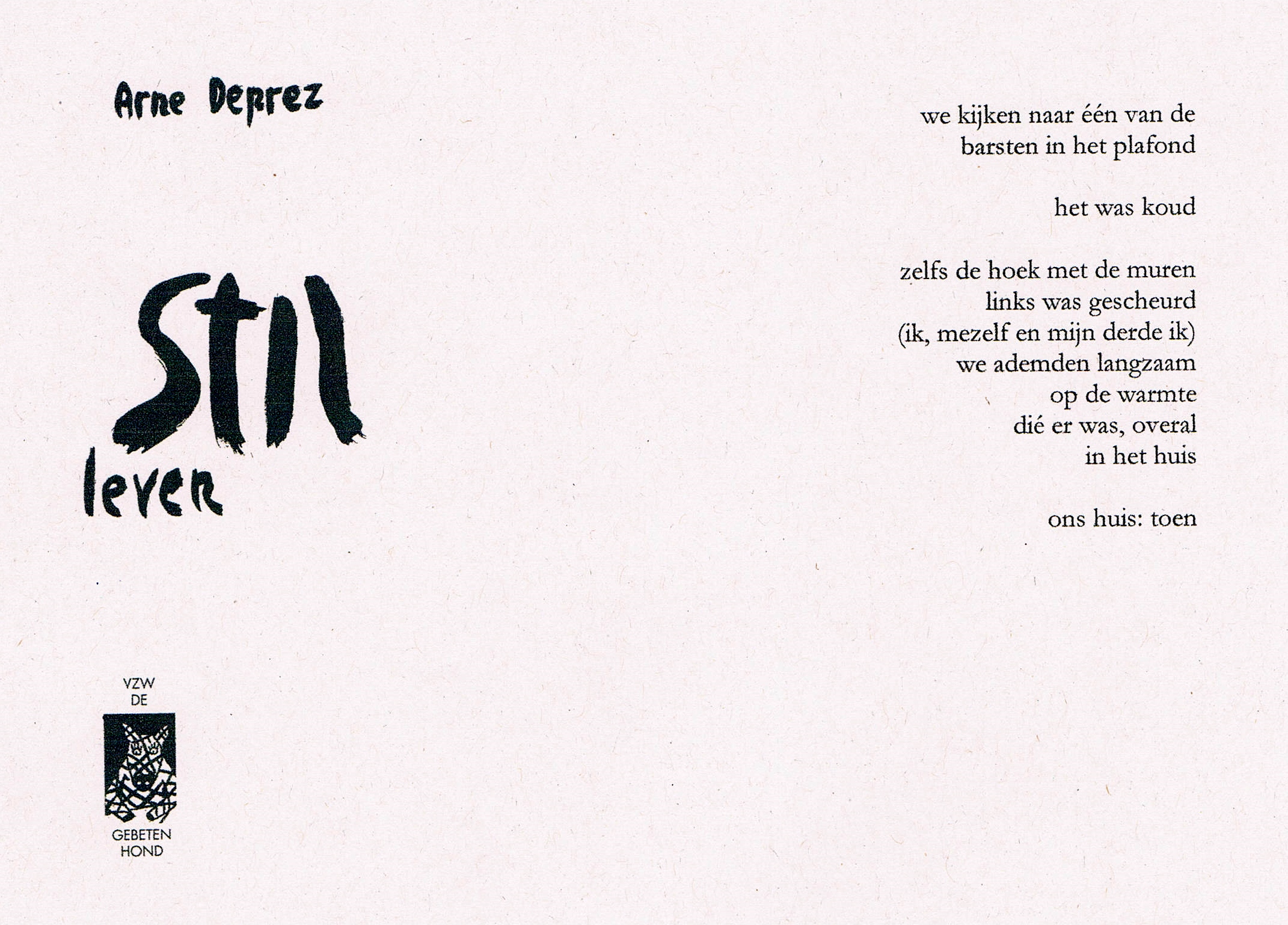 Hieronder volgen de eerste drie, oudere publicaties van Arne Deprez, via De Gebeten Hond vzw, onder auspiciën van Jan Van Herreweghe. Ze behoren tot zijn ‘eerste periode’.