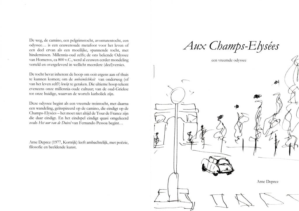 Aux Champs Elysées is een vreemde odyssee, die conform het millennia-oude concept, de hoop vertolkt om thuis te kunnen komen, om de unheimlichkeit van onderweg kwijt te geraken. Deze odyssee begint als een vreemde treintocht…