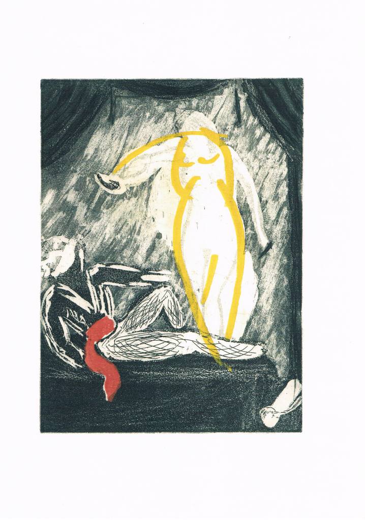 Dit is een originele prent uit de luxedoos Amor & Psyche. De prent is een aquatint-ets met zeefdruk erbovenop.